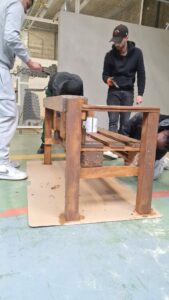 Ils ont aussi construit des bancs d’extérieur en bois de récupération avec l’OPEJ, montrant qu’on peut créer du solide et du durable à partir de matériaux de récupération.